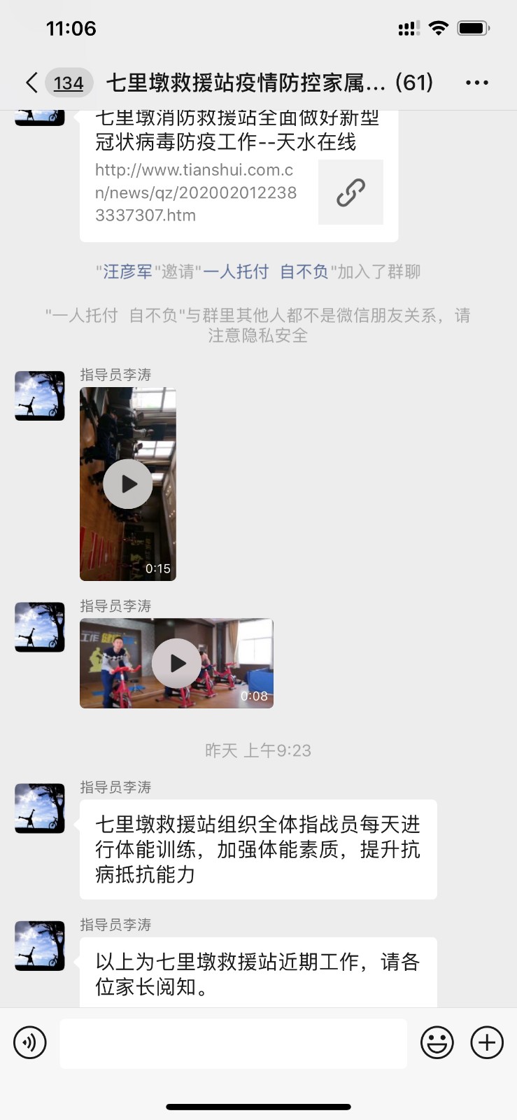 跟进关注队员家庭。建立消防员家属群,对指战员家庭进行了细致地排摸,及时做好消防救援队伍疫情防控工作的传达和宣贯,尽力争取广大家属同胞们的支持和理解,最大限度减轻指战员后顾之忧,确保队伍思想稳定。