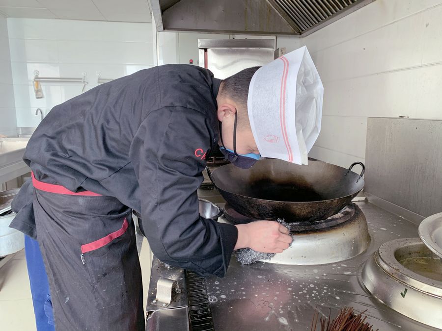 在全国疫情防控的关键时期,代立同志深知卫生防疫的重要性,他认真核对每天供应的食材,并对食材的质量进行检验,他还每天三次对厨房餐厅进行消毒,保证安全可靠,让同志们吃上放心饭。他说“我们虽然不能像战斗在一线的医护工作者一样伟大,但做好我们自己的工作,就是我们对防抗疫情最大的贡献。”