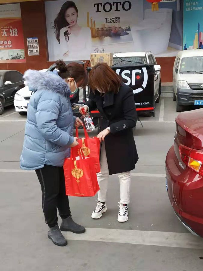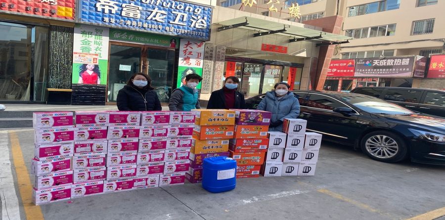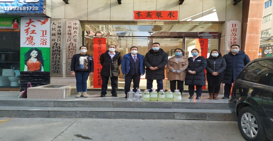 爱心企业给疫情防控一线工作人员带来了口罩和酒精等防疫物资。
