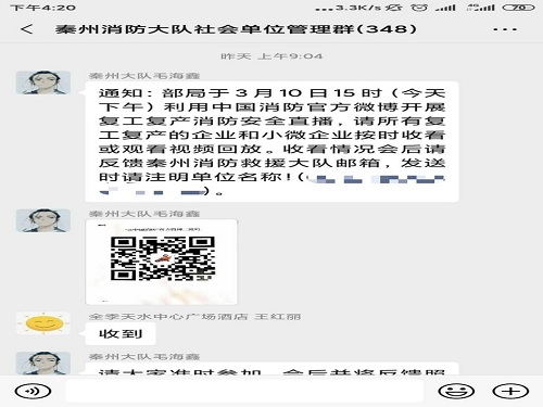 3月10日,由中国消防救援局组织开展的复工复产企业消防安全培训以网络形式在中国消防微博上直播放送,秦州区消防救援大队积极行动,及时组织辖区复工复产企业收看了网络直播。