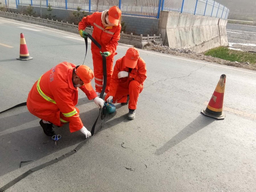 同时,在作业中加强现场安全管理工作,规范布设作业区及摆放安全标志,设专人指挥交通,确保安全生产。截止目前,已完成路面贴缝1000余延米,该项工作正在有序进行中。