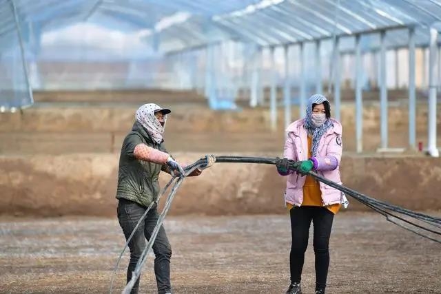 3月13日,甘肃省天水市秦州区杨家寺镇中川村农民在当地金土地农民种植专业合作社工作。