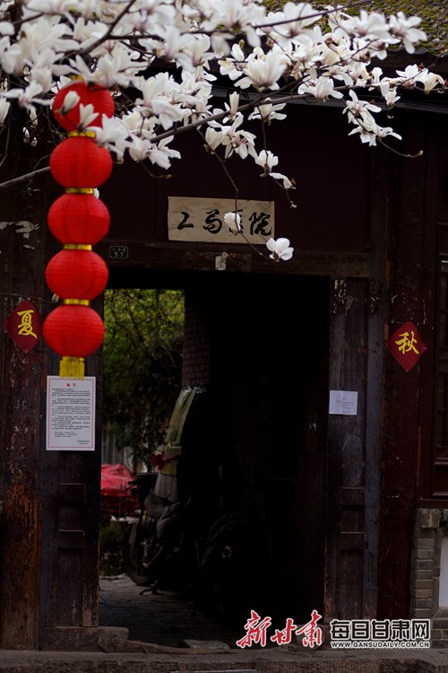 拥有众多明清风格古建筑遗存和600余年古槐的老街自由路“玉兰街”上,春意盎然,在蓝色天幕、黛瓦白墙、红色串灯的映衬下,玉兰花愈发素静温婉、娇羞可人,晶莹玉润的花姿、沁人心脾的馨香,吸引着不少路人留恋观赏。