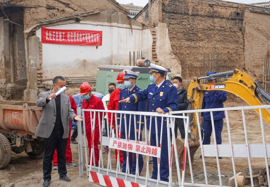 期间,牛小强一行通过听取改造建设方案、现场查看建设工地等方式,对天水西关古城小型消防站、微型消防站建设,消防器材配备,电气线路设施建设等情况进行了详细查看。同时,还实地查看了消防总平面图、防火设施以及市政消火栓规划建设情况。