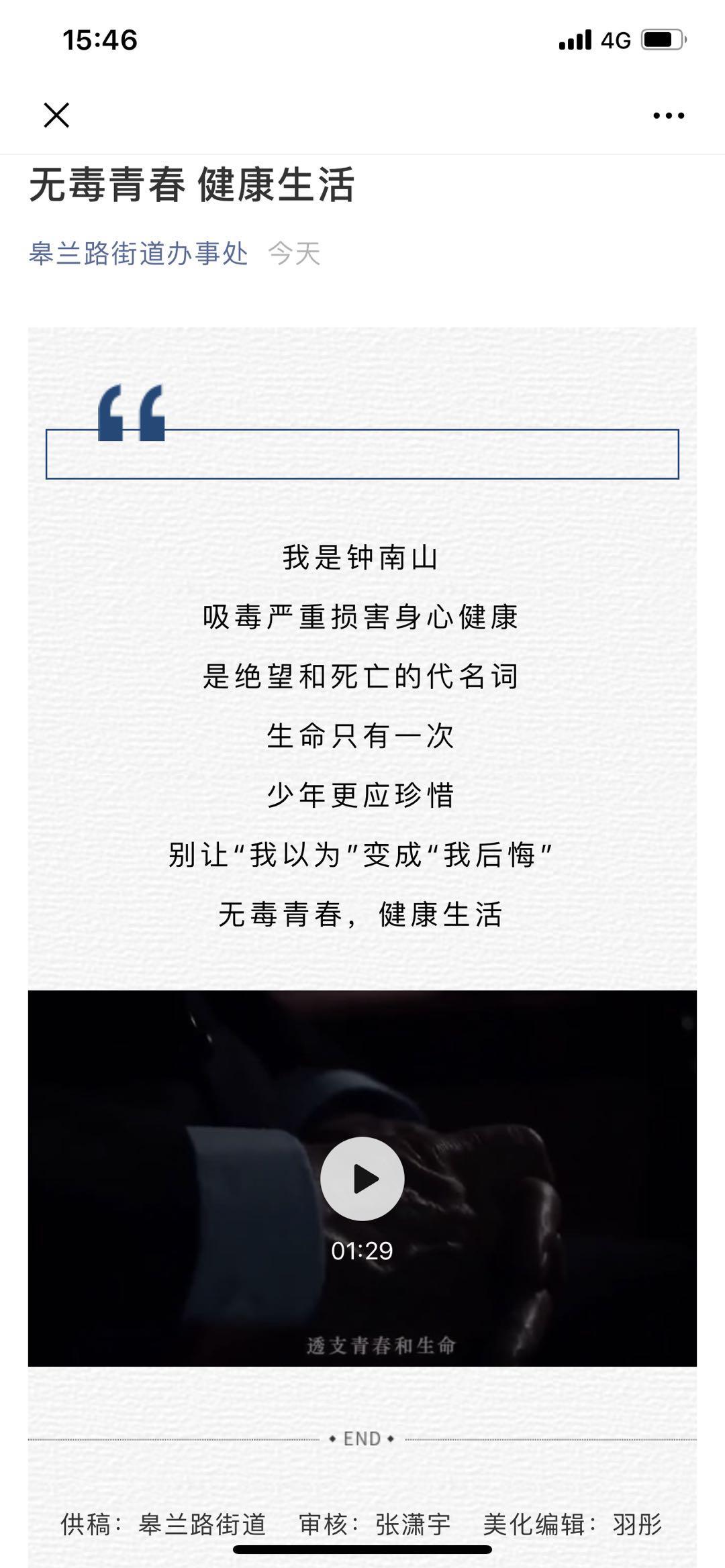 同时街道辖区大屏幕、街道微信公众号、社区便民群、工作人员朋友圈里同步播放进度宣传片《别让“我以为”变成“我后悔”》让居民进一步认识到毒品的危害,增强群众禁绝毒品的决心,提高居民群众对毒品的抵制能力。