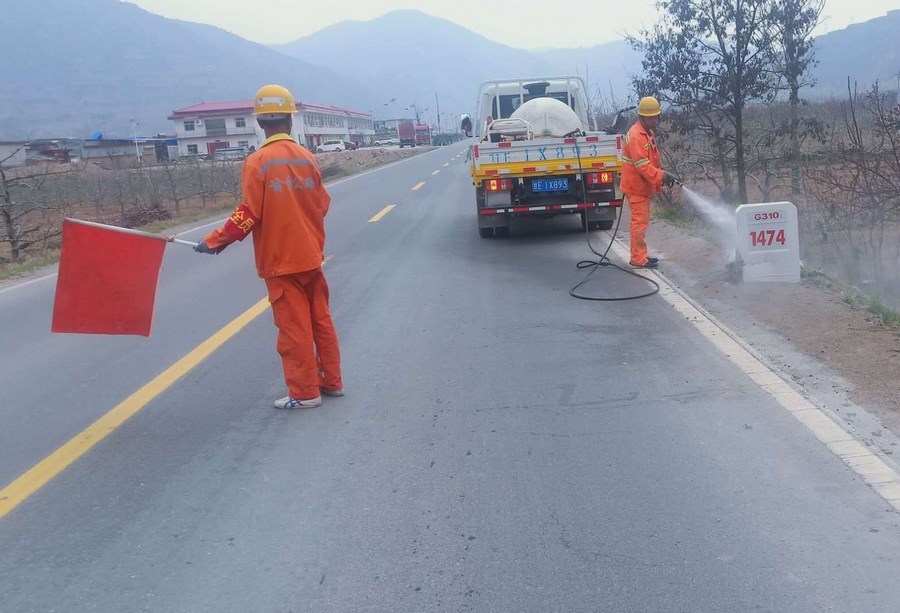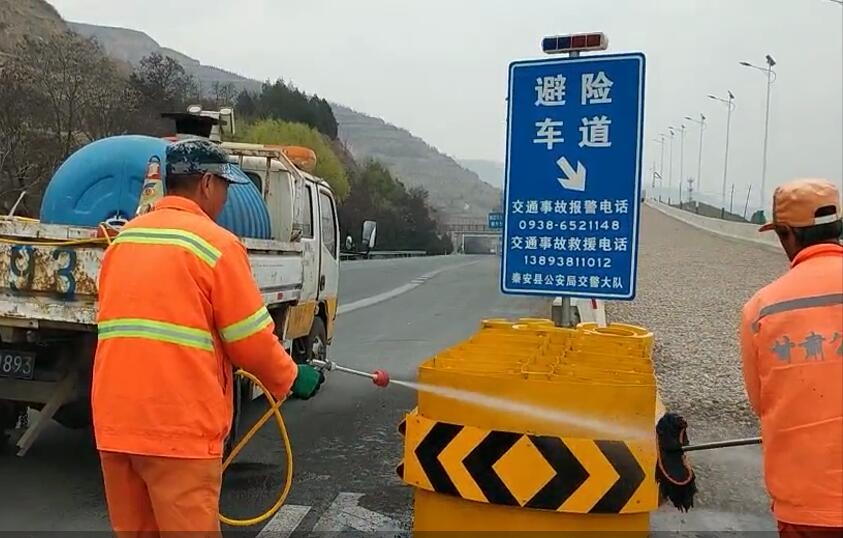 连日来,天水公路局高养中心持续推进春季公路养护生产工作,采取人工、机械结合的方式,对管养G247线景昭公路和G310线连共公路的波形梁护栏、标志标牌、公里牌百米桩、桥梁栏杆及隧道内导向标等设施进行了全面清洗,使管养路线交通沿线设施外观焕然一新,保证了外观整洁,识认良好,功能正常,营造了安全美观的公路出行环境。