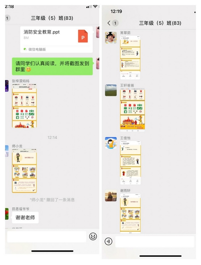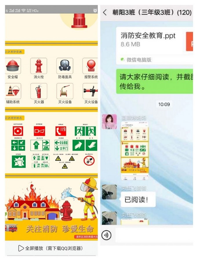 课堂学习内容涉及到消防常识、预防常识、应急常识等,并着重从排查、消除家庭火灾隐患;如何预防火灾隐患;如何安全逃生等方面入手,引导学生提醒家长注意家庭用火用电用气安全。同时,每日推送消防安全提示信息和居家防火安全知识,发动各中小学校利用微信群、网上课堂等媒体平台开展防疫期间消防安全教育宣传。