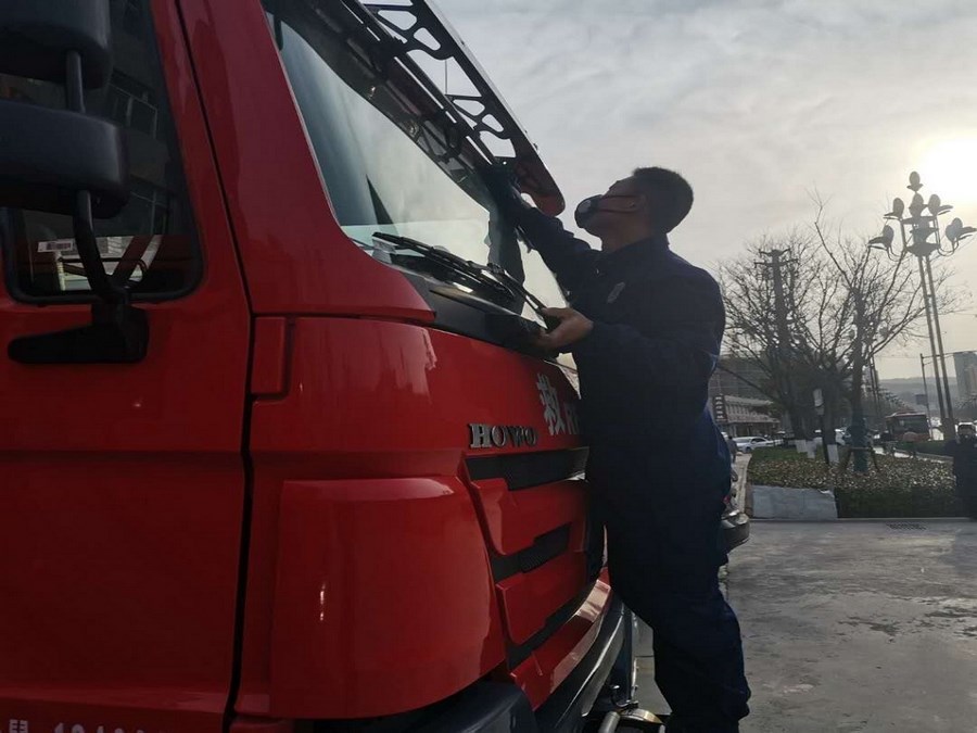 在对执勤车辆、器材安全排查过程中,队员们严格按照车辆保养维护的要求,严格落实“谁管理、谁维护、谁使用、谁负责”的原则,从日常细节入手,强化安全防范意识,对执勤车辆的发动机、制动系统、灯光线路、转向、燃油、供电、供水系统等进行检查,及时发现问题、排除故障,保证车辆性能和技术状况良好。同时,对个人防护装备进行彻底检查,个人防护装备有没有损坏、丢失等情况进行细致的检查,最后,对车辆装备器材存在的问题进行仔细记录并立即进行维修解决,确保车辆及装备器材的完整好用。在检查车辆器材的同时,全体指战员对器材车辆进行了全方位的清洗擦拭,使车辆装备焕然一新。