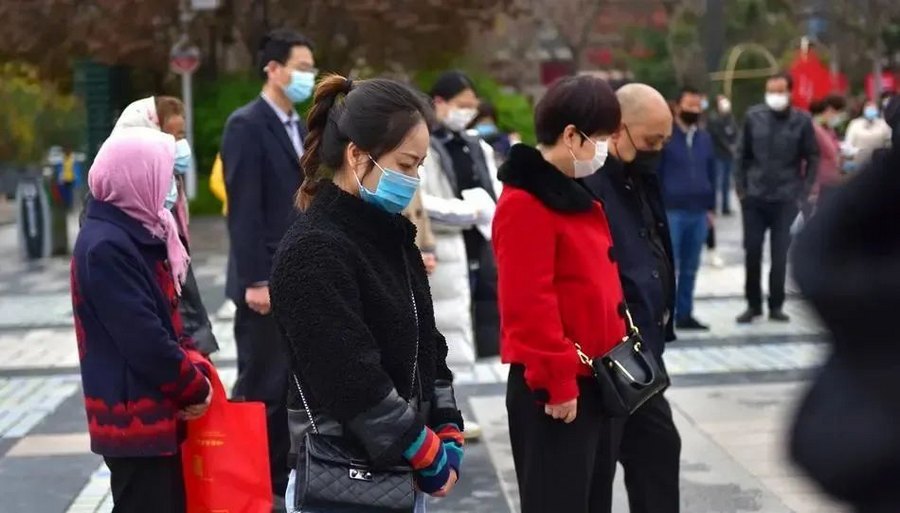 上午10时,防空警报响彻云霄,全市应当升国旗的场所、机构和单位国旗半降,街头车辆纷纷停车鸣笛志哀,全市各界人民群众低头默哀,表达对抗击新冠肺炎疫情斗争牺牲烈士和逝世同胞的深切哀悼。此刻,整座城市对生命尊严致以最高敬意。