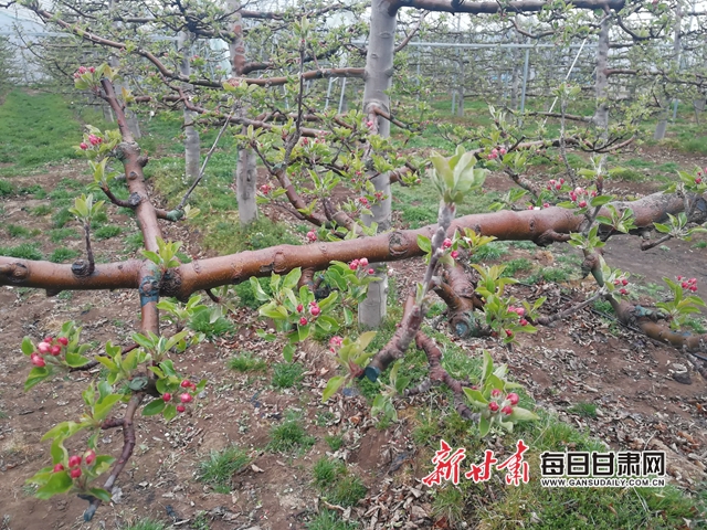 清明时节,正当天水百花盛开之际,承载着果企果农新一年希望的苹果树,也露出了花红,并在争春中向着初花期盛放。