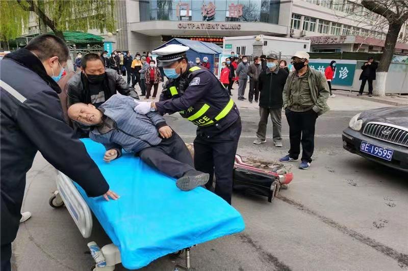 2020年4月7日上午,麦积交警城区二中队民警在成纪大道巡逻途径天水市第二人民医院时,看到一起交通事故导致人员受伤,执勤民警迅速上前,第一时间查看伤者情况并协助医护人员对受伤男子进行救治,随后及时疏导交通,避免了因事故导致的交通拥堵。(通讯员:崔添龙)