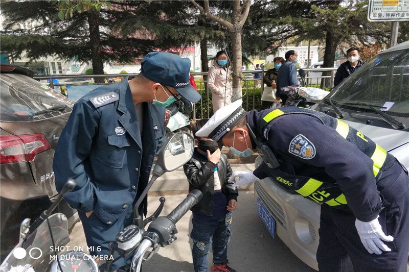 2020年4月8日,麦积交警城区二中队民警巡逻至区府路天水市第四人民医院时,医院保安拦停巡逻车辆求助,称有一小孩在医院与其家人走散,希望麦积交警能够帮助孩子找到家人。