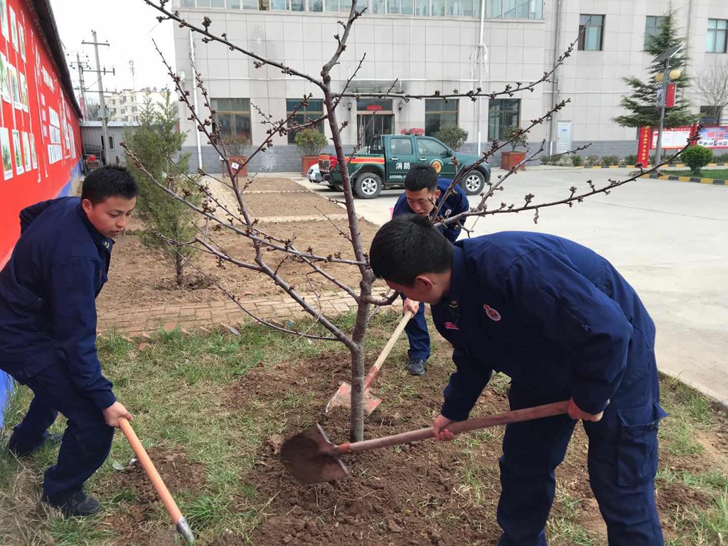 在大队营区内有一块闲置的空地,为了更好地完成“一队一特色”建设任务,大队合理利用未开发的用地,同时改善营区环境,培养队员们自力更生、艰苦奋斗、热爱劳动的好品质,大队整合现有的资源,打造现实版的“开心农场”。而平日里在救援现场和训练场冲锋陷阵的消防员,已经化身为勤勤恳恳的“农夫”,有的挖坑,有的填土,有的浇水,如果不是他们身上的“火焰蓝”,还让人误以为来到了一处农庄。