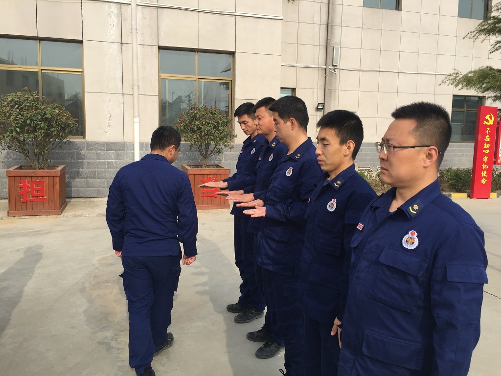 在队列训练过程中主要以停止间的队列动作:立正与稍息、立正与跨立、停止间转法、蹲下与起立、脱帽、夹帽、戴帽、敬礼与礼毕为主,要求训练场上指挥员精神抖擞、讲解规范、口令清晰,参训指战员精神饱满、姿态端正、动作准确、统一。永清消防救援站根据消防救援队伍准现役、准军事化的建队要求,严格按照《内务条令》有关规定要求对指战员着装、头发、指甲、鞋袜等方面进行了检查,对个别着装不规范、警容不严谨等违反条令条例规定的指战员要求立即整改。