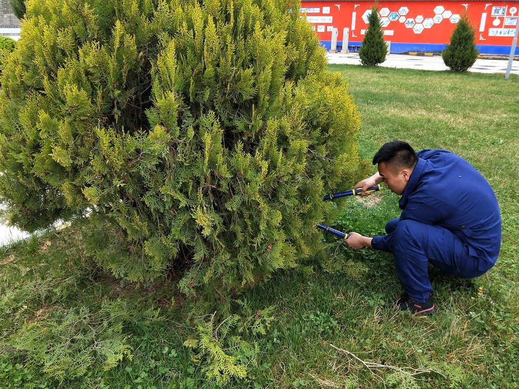 近日,永清站指战员们利用训练结束后的休息时间,对营区花草树木进行“整容”,对原有的树木进行了修剪、整理、灌溉,使整个营区绿意盎然,充满了勃勃生机。在绿化营区活动中,指战员们在提水浇灌、修剪树枝、清理杂草中个个精神饱满、热情高涨,你一锹,我一铲,干得热火朝天。修剪结束后,草坪内的树木看起来更整齐美观了,指战员们的心里也乐开了花。