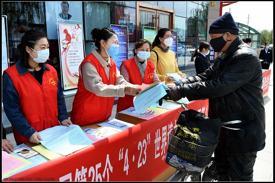 活动当天,正值知识产权保护宣传周,麦积区图书馆与新华书店联合开展阵地宣传活动,现场不仅摆放了制作精美的宣传展板,工作人员还向过往群众发放《全民阅读倡议书》《世界读书日简介》《公共图书馆法》及《扫黄打非》宣传单,并通过电视、广播等新闻媒体向社会发出全民阅读倡议,在全区范围内广泛宣传,引起全社会对全民阅读的关注和重视,并保护知识产权,净化社会文化环境。