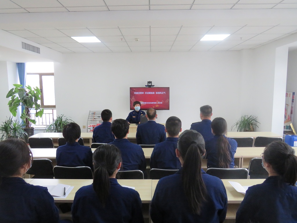 廉政课上,教导员刘江艳结合大队队伍建设的实际和“警示教育周”活动学习情况,从廉洁自律内在含义、廉洁自律学习榜样、廉洁自律守住底线三个方面进行了授课。