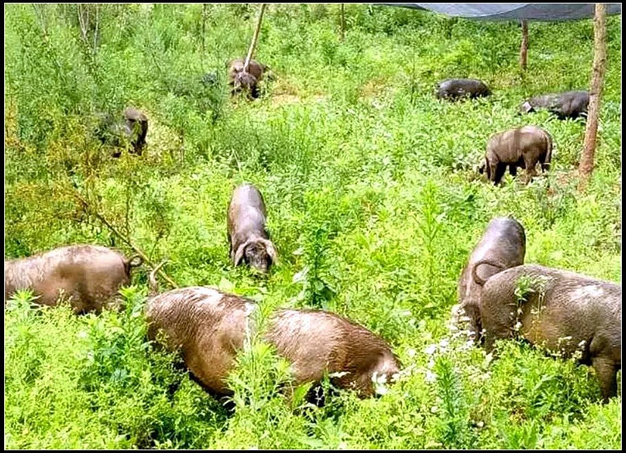“铁山村气候温润、植被茂盛,远离污染源。生长在这里的青泥黑猪不再被圈养,而是野外围网放养,大量的活动增强了青泥黑猪的抗病能力,加之主要食用作物秸秆、玉米,在放养期间青泥黑猪还能自主择食一些中草药和菌类,喝的也是纯天然山泉水,充分的杂食性也提高了青泥黑猪自身抵抗力。当然,最主要的还是做好防疫工作。”铁山村第一书记王湖介绍说。