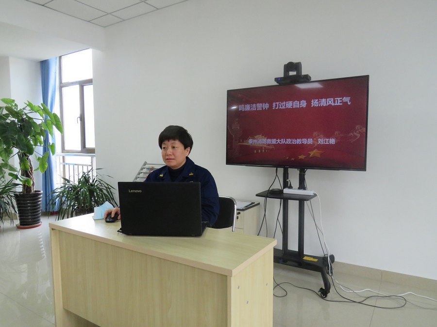 廉政课上,教导员刘江艳结合大队队伍建设的实际和“警示教育周”活动学习情况,从廉洁自律内在含义、廉洁自律学习榜样、廉洁自律守住底线三个方面进行了授课。