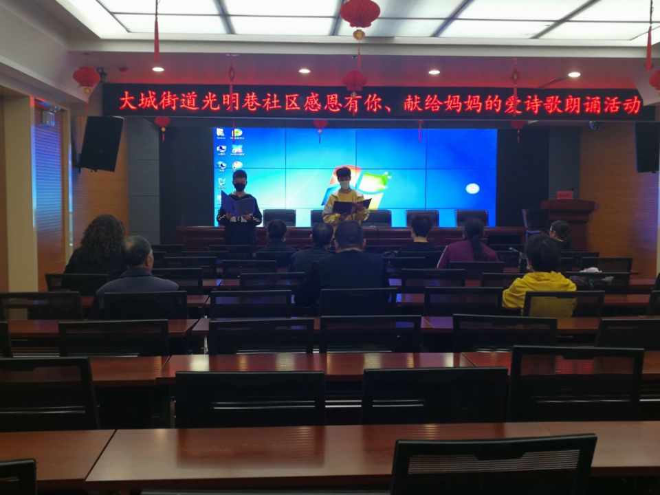 在“母亲节”来临之际,天水市秦州区光明巷社区组织开展了一场“感恩有你·献给妈妈的爱”诗歌朗诵活动。