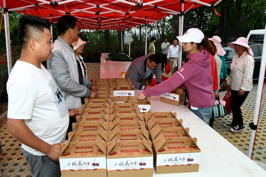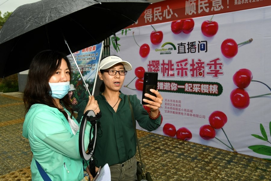 刚下枝头,便上舌尖。5月23日,由天水市商务局、麦积区商务局主办的“伏羲御果·‘樱’爱而来”开园采摘暨场景式直播带货活动在马跑泉镇翠山梁伏羲御果优质樱桃生产基地举行。