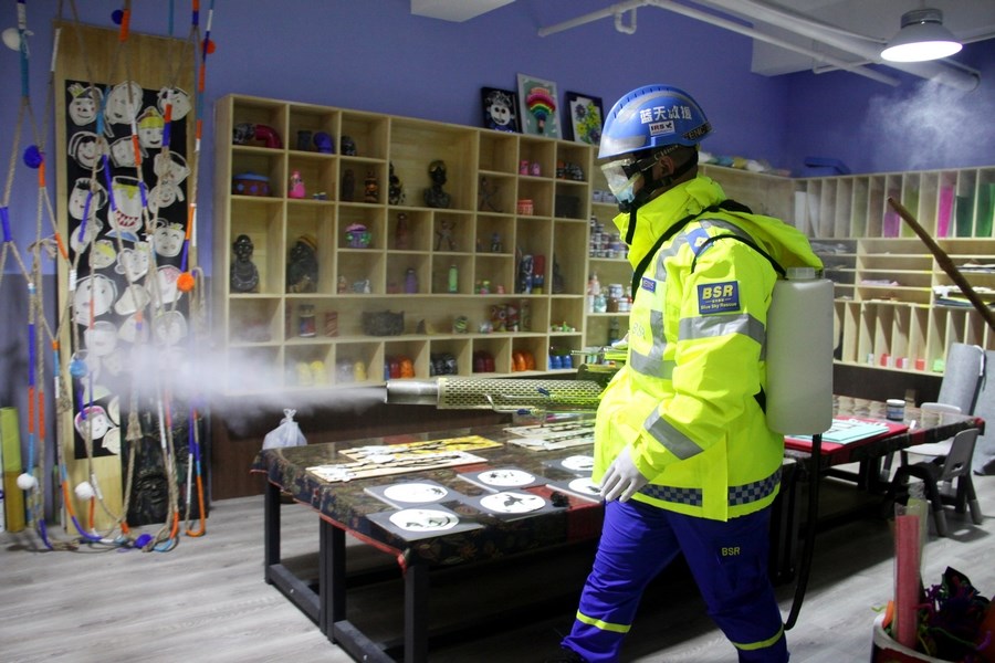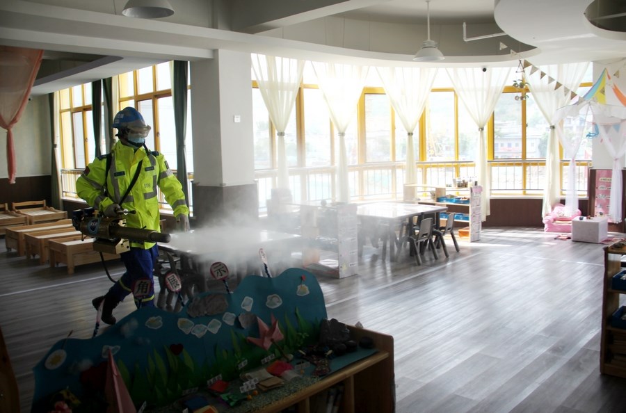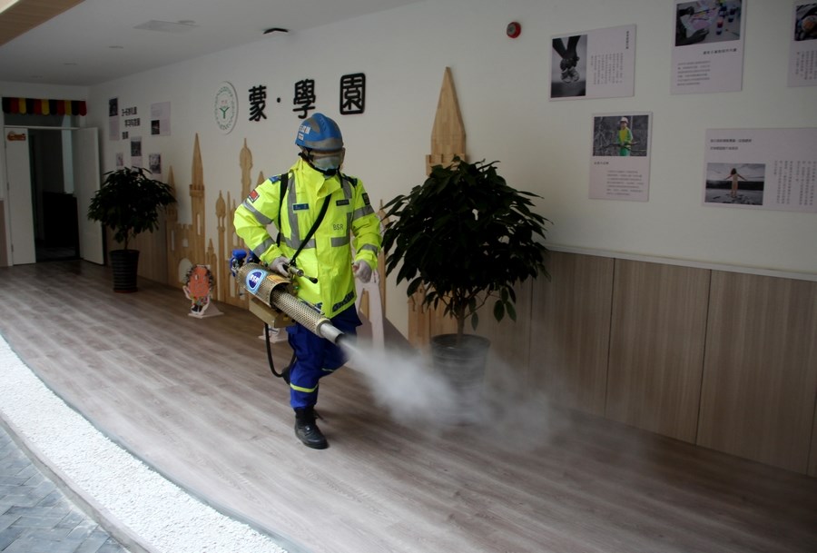 在秦州区蒙学幼儿园消杀作业现场,记者看到,工作人员在做好自我防护的前提下携带专业消杀设备,分组开展消杀工作,消杀范围覆盖教室、办公室、会议室、餐厅、功能部室、低幼活动区、洗手间,校园周边环境等。同时对楼道、楼梯扶手、洗手池等重点区域实施密集反复消毒,确保消杀不留死角。