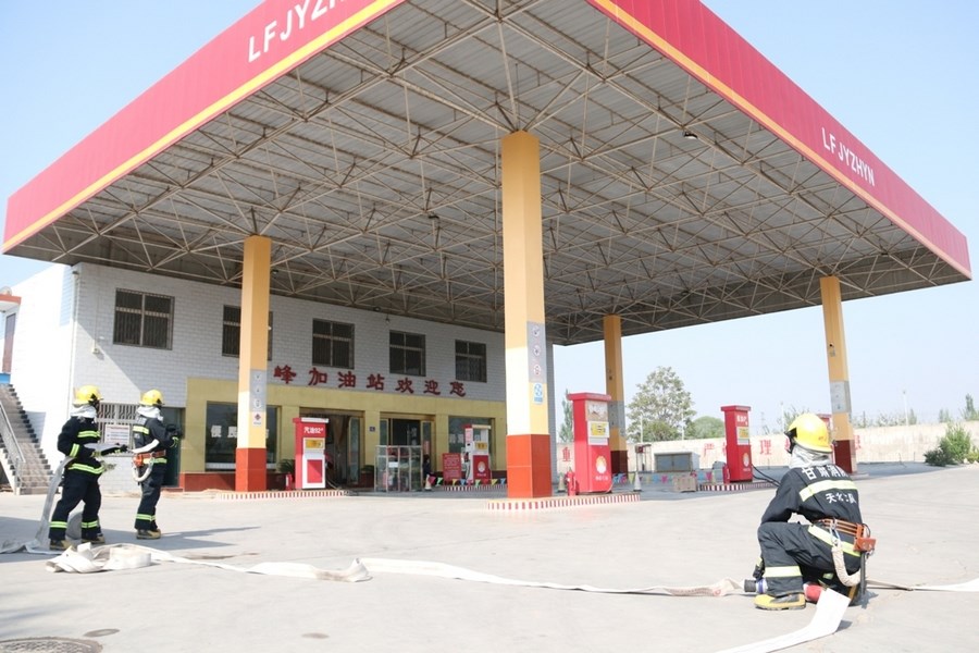 此次演练,针对加油站的相关设施组织开展;设置了侦察检测、冷却抑爆、泡沫补给、火场供水、总攻灭火、紧急撤离等科目的训练演练;演练过程突出“训战一致”的原则,根据演练进程,结合场景变化随机增设险情,紧扣技战术运用,当场指出存在的问题,实地进行教学示范,检验和提升队伍应对处置石油化工灾害事故能力。