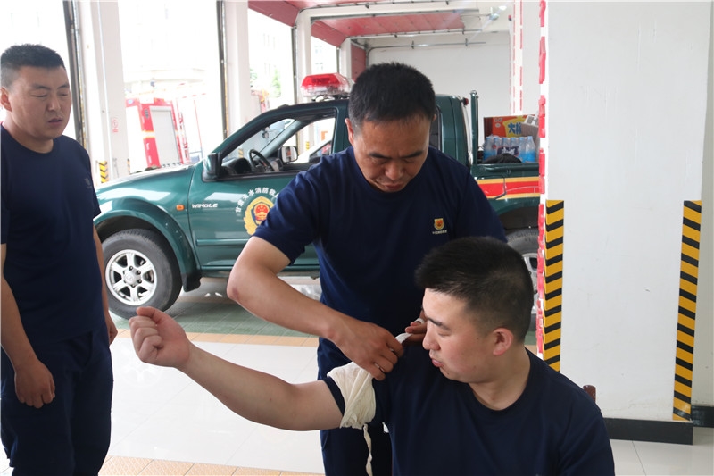 此次训练主要帮助消防员们学习止血、包扎、固定、搬运等常见急症、意外伤害的急救处理与应急救人心肺复苏方法。在训练开始之前,站指挥员首先给大家进行了认真细致的讲解示范,接着由每名队员进行体会,随后,为使全体人员有一个更加直观的认识,站指挥员组织了一次实战模拟下的自救互救训练,在实战模拟训练中,每名队员都能积极踊跃参与,认真体会要领,并及时发现和改正了在实战条件下自救与互救方面存在的问题。
