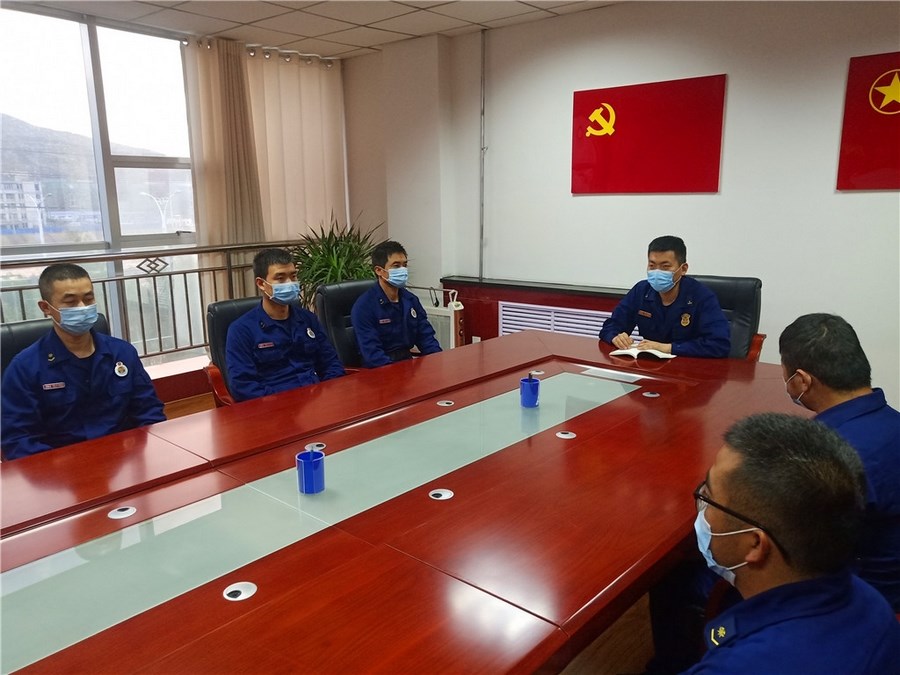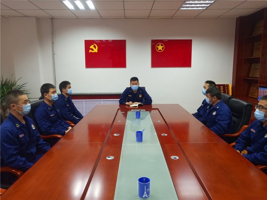 最后,徐中帅提出五点要求:一要严抓作风养成,通过组织学习条令纲要、开展队列训练、经常性办公秩序、内务检查等途径提高;二要严格落实各项安全管理规章制度,组织学习《作战训练安全行动手册》、《抢险救援勤务规程》、《灭火救援典型战例汇编》、《甘肃省消防救援总队灭火救援作战训练禁令》等资料,树牢安全意识;三要加强执勤训练及安全隐患排查整改,严格按照周训练计划开展训练,按纲施训,严格落实库室、楼梯楼道消毒、出入营门登记、请销假、用车审批、查铺查哨、“人车酒、网电密”,每周坚持对装备器材、训练器械维护保养,确保完好有用;四要严格落实值班制度,不允许私下私自换岗、调岗、离岗;五要确保灭火救援中心任务。敏感特殊时期外出灭火救援必须要佩戴口罩,防护装具穿戴齐全,确保车辆油气电充足,坚持每战必评制度,通过视频回放、讨论剖析、课题研究、现场讲评等形式,对灭火救援行动进行逐一复盘,分析存在的安全隐患和制度漏洞。