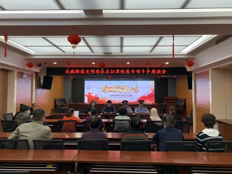 随后,召开了扫黑除恶专项斗争座谈会,会议本着“打早打小、有黑扫黑、无黑除恶、无恶治乱”的原则,向党员宣讲了扫黑除恶专项斗争的重要性,明晰了涉黑涉恶涉乱行为及严惩对象,讲解了哪些行为属于故意伤害罪和非正常上访。会议号召党员,发现可疑黑恶团伙、人员要第一时间向当地派出所或者社区检举揭发,要勇敢地维护自身合法利益,自觉参加到与黑恶势力斗争的行动中来。与会党员纷纷表示要为维护社区治安稳定、建设平安和谐社区贡献力量,确保扫黑除恶专项斗争取得扎实成效。