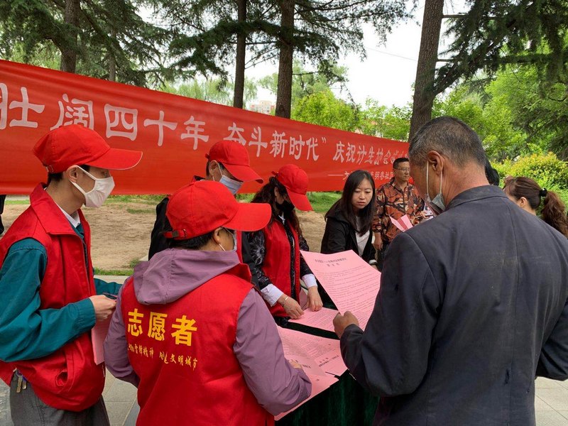 5月26日上午,大城街道光明巷社区在人民公园,开展了以“壮阔四十年,奋斗新时代”为主题的庆祝协会成立40周年宣传活动。