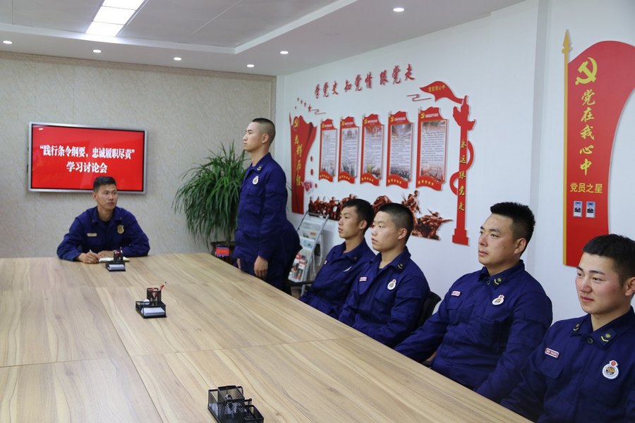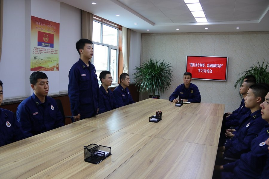 会上,站干部首先带领全体指战员学习支队关于开展“新条令纲要宣贯”活动的通知文件精神和部署会议要求,随后展开了以“践行条令纲要,忠诚履职尽责”为主题的相互学习、相互交流讨论活动,重点讨论职责不清、人岗分离、岗位与标准不匹配等问题。讨论活动中,全体指战员人人思考、人人找不足、人人发言,结合自身的工作岗位和工作经历,以生动朴实的语言阐述自己的认识看法,表达了立足本职、恪尽职守、创优争先,勇于担当神圣使命的决心。