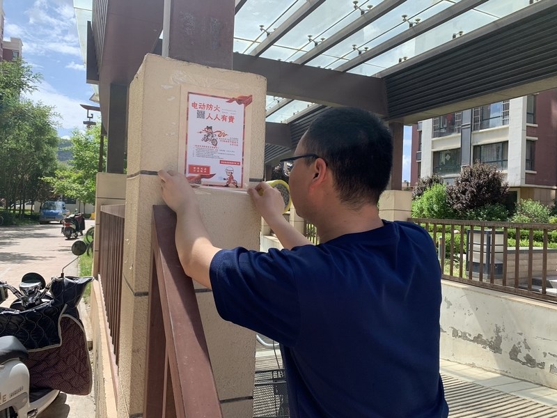 加强防范严管理。结合电动车规范化管理工作,大队组织消防宣人员深入辖区各小区发放张贴电动车消防宣传海报并向过往居民讲解电动自行车违规存放、充电的火灾危险性,强调电动车不能摆放在楼梯口长时间充电、严禁将电动车停放在建筑物疏散通道。同时结合近年来发生的电动车火灾案例,提醒群众应购买使用已获生产许可证的厂家生产的质量合格的电动车、充电器和电池,充电时要注意远离可燃物、充电时间不宜过长等事项。并积极发动各物业服务企业做好小区的防火巡查、检查工作,督促住户在小区安全区域停放、充电,杜绝乱停乱放、私拉乱接线路的现象发生,对出现的违规行为予以制止,同时加强对广大县民的教育引导。