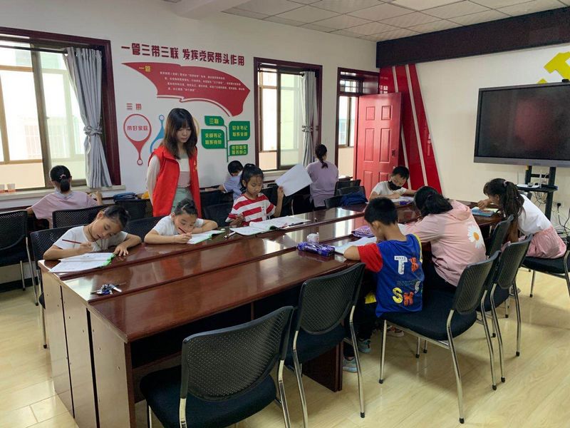 暑假班老师由新时代文明实践站志愿者和社区时间银行志愿者担任,上课时间为每天上午9点至11点,下午3点至5点。早上孩子们有一个小时的作业时间和一个小时的自主学习时间,下午由志愿者老师将孩子们分为低年级和高年级两个班,分别讲解作业中遇到的难题,每周五下午还有志愿者来给孩子们上经典阅读课程和绘本写作等内容。虽然是暑假,志愿者老师们对孩子的要求一点没有放松,对于学习时间和休息时间安排的非常合理,讲解和辅导也认真负责。