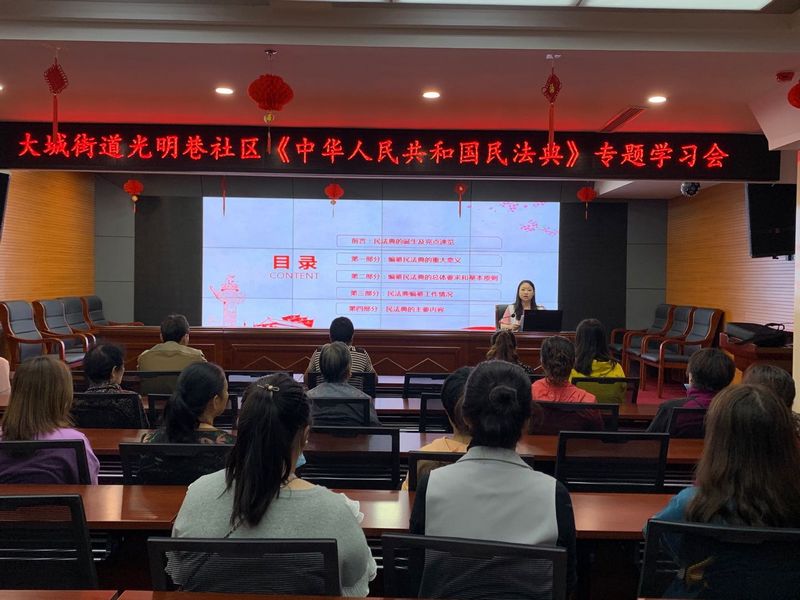 为加强《中华人民共和国民法典》在群众中的宣传学习,更好维护居民合法权益,营造依法、有序、和谐的社区环境。8月18日上午,光明巷社区在新时代文明实践站组织开展了《民法典》专题学习活动,社区党员和部分居民代表参加了学习活动。