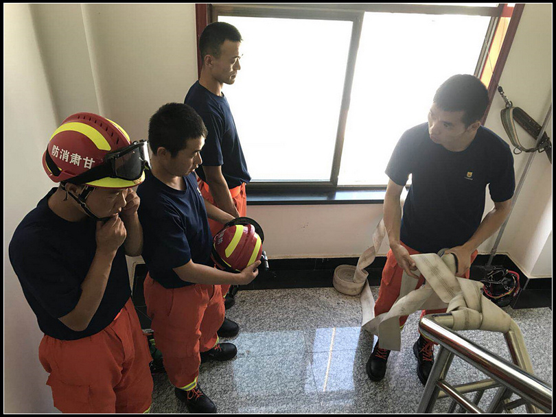 训练过程中,站长李帅首先组织队员整理准备自救器材,自救器材是将腰带上的捆绳重新整理放入绳包,并将绳头两端露出并拴上挂钩,随后为队员们详细讲解了逃生自救操法的用途及操作过程,同时模拟了一个火情:一房间内部起火,浓烟弥漫,有人员被困,生命受到严重威胁。攻坚组队员进入火场实施救援,而且靠近窗户,要求队员利用固定支点和轻型安全绳或水带紧急撤退,队员们分别利用水带和安全绳紧急撤离火场。最后,站长李帅对此次火场逃生演练活动进行了点评。
