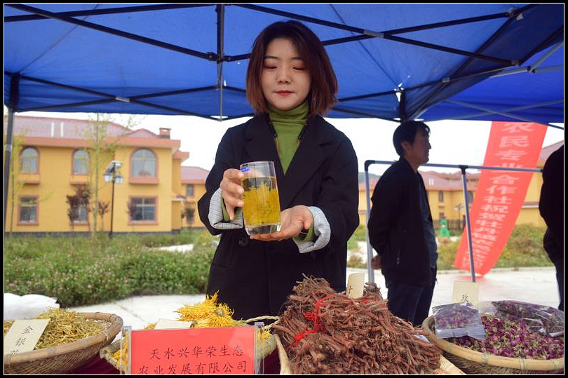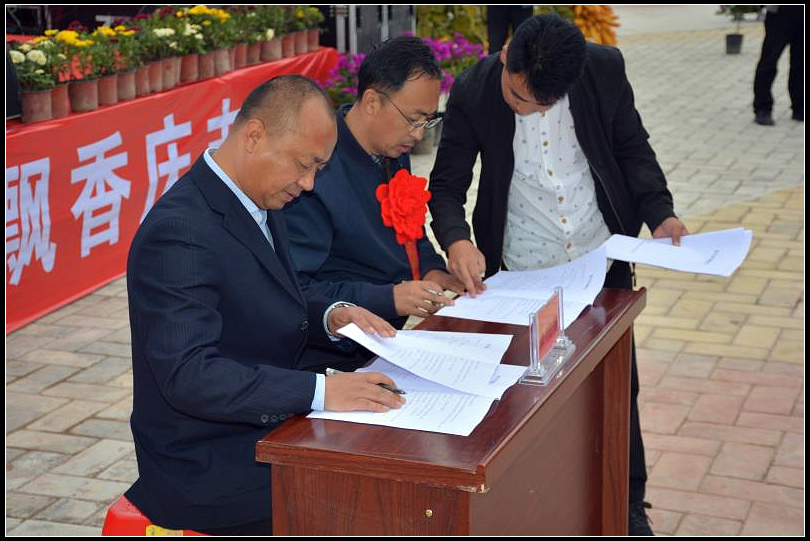 范会明代表牡丹镇党委政府与秦州区电子商务协会签约,达成共同推介销售牡丹镇农产品的战略协议。