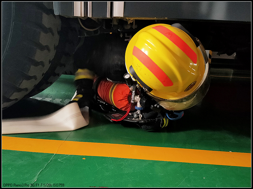 “真正进入火场,什么都看不到,你不清楚前面会有什么,也不清楚可能发生什么。”消防队员采取“前虚后实”的探步姿势,一只腿在后面作为支撑腿,一只腿在前面探路。或采用“跪姿”方式,后面一只脚跪下,让重心完全落在后面,假如前面踩空,也不会掉下去。但这样的姿势走得很慢,20米距离往往要走十多分钟。根据测试,让消防指战员更清楚自己的空气呼吸器能坚持多长时间,锻炼队员对火场作战时间的掌控能力,有效增强黑暗复杂环境下的救援及自救方法,提高灭火救援时整体的作战水平。