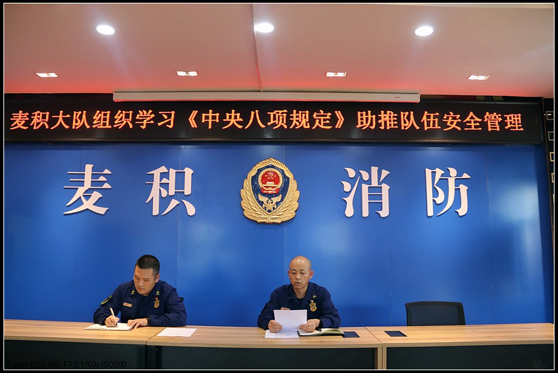 中秋、国庆双节将至,为认真贯彻落实《十八届中央政治局关于改进工作作风、密切联系群众的八项规定》精神,切实加强“双节”期间部队作风建设,9月24日,麦积大队组织全体干部、文员、指战员,认真学习了中央八项规定细则。