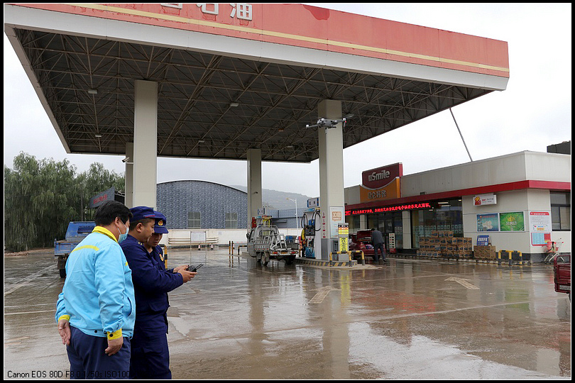 此次检查,为了使监督检查人员更加清晰地查看到加油站内各种动态信息,监督检查采取“上下联动”的检查方式,前期通过无人机360度旋转摄像,实时传输视频图像的有利优势,进行实时监控,并建立现场三维实景地图,形成了人工智能、立体防控监测体系,进一步提高火情监测效率提供了强有力的保障。随后,大队监督检查人员认真查阅了加油站的日常防火巡查记录、消防设施定期维护检查检测记录、加油站值班制度、用火用电制度、灭火预案及紧急疏散预案等资料,重点对加油站内的储罐区、加油区、卸油区等部位进行了认真的检查,同时对是否按规定设置消防设施设备、灭火器材是否完整好用;电气设备防爆、防雷、防静电保护设施是否按规定进行检测;是否设置醒目的消防安全标识;员工是否接受了消防培训和对灭火器材和单位内部的消防设施是否熟悉,并对单位员工的消防知识、技能掌握等情况进行了抽查。针对检查中发现问题,大队检查人员责令加油站负责人当场整改落实,同时反复叮嘱加油站负责人要加强对火灾的防范意识,坚决消除各类消防安全隐患,确保场所绝对安全。