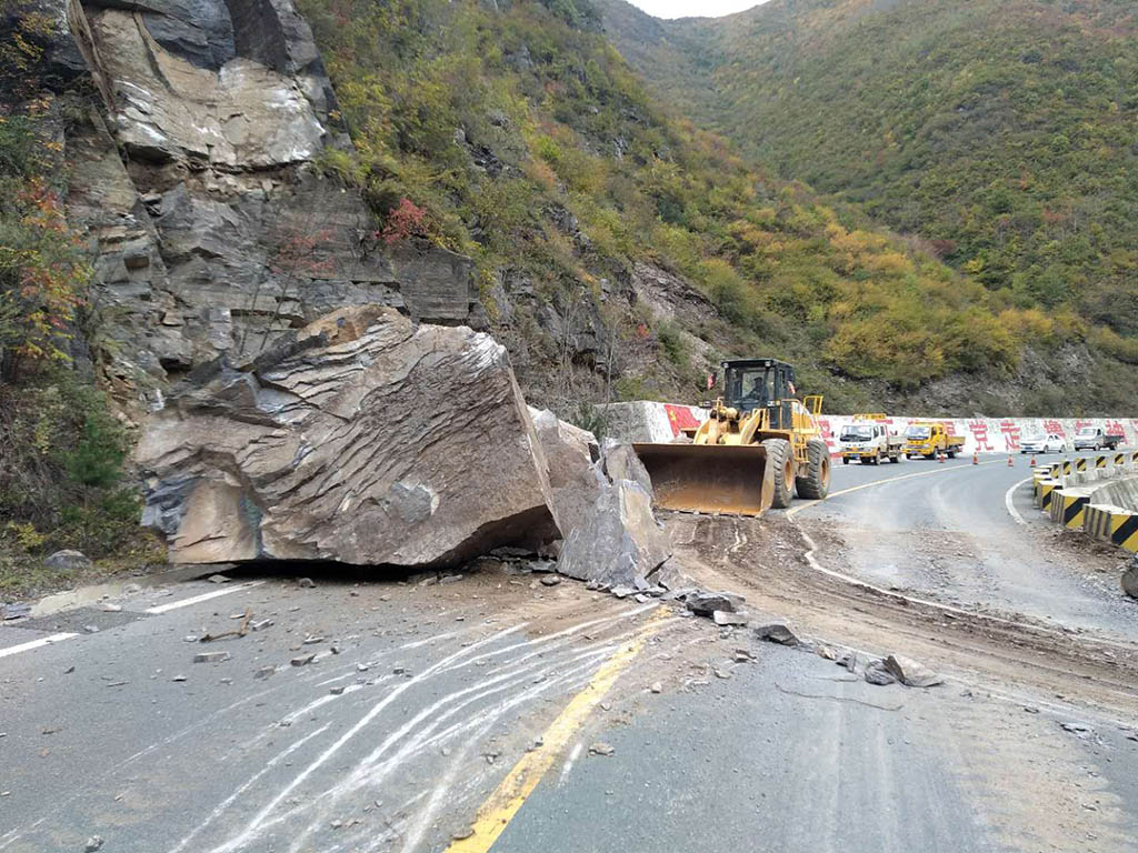 通过人工和机械配合,两个多小时后路面落石清理完毕,道路恢复正常通行,其他受损的设施正在加紧修复当中。(甘肃省天水公路局武山公路段 刘志伟15393068166)