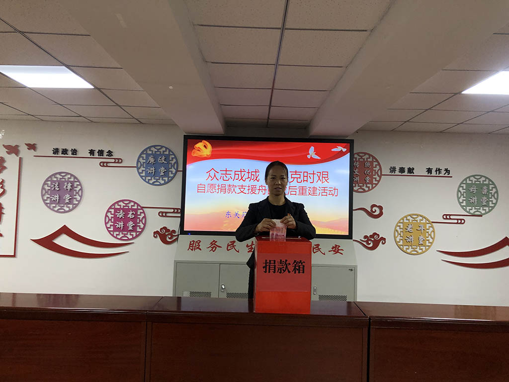 社区党总支书记谢生玉同志说:“灾害无情人有情,我们要深入贯彻落实习近平总书记关于防汛救灾工作的重要指示精神和省市区委部署要求,带领辖区广大党员干部以实际行动帮助灾区人民群众开展灾后重建工作,让舟曲受灾群众早日摆脱困境,尽快恢复正常生活、生产秩序,共享社会和谐温暖。