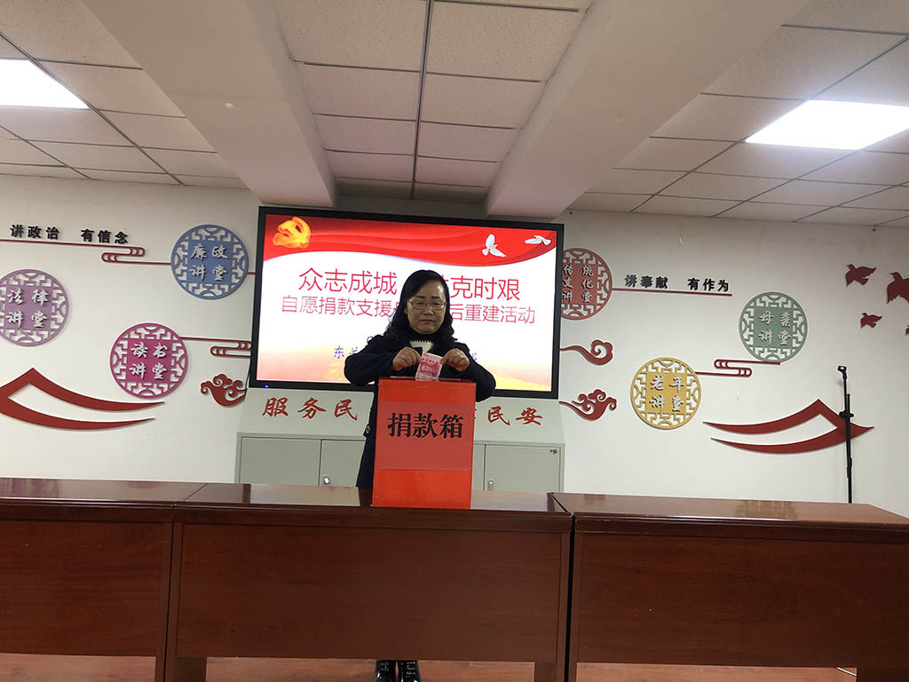 此时此刻,在东关苑社区,爱心还在接力,祝福还在延续,一件件感人的事迹还在感染着你、也在感染着我。灾害无情,人间有爱。让我们携起手来,与灾区群众风雨同舟、患难与共,用诚挚爱心铸成抵御灾害的铜墙铁壁,用真情相助换来灾区人民的幸福安康,愿他们早日重建美好新家园!(供稿:王有元)