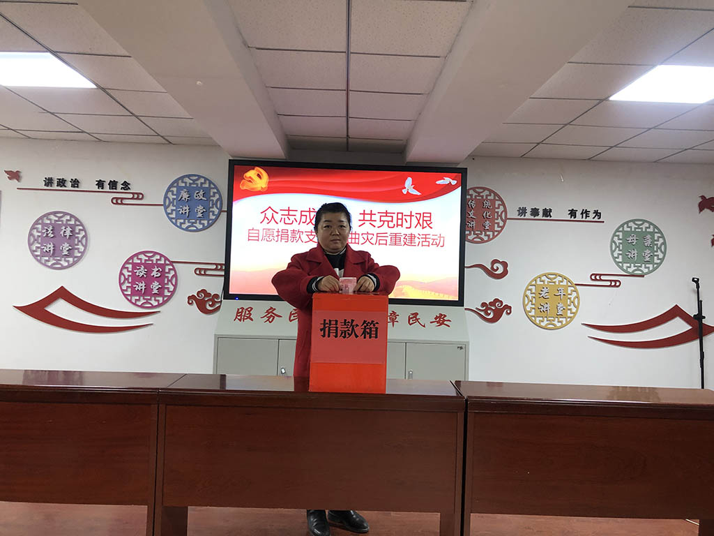 中国甘肃在线肃州讯 为积极响应区委、区政府对口支援舟曲县灾后重建工作部署,努力营造全社会支援舟曲县做好灾后重建的浓厚氛围,10月21日下午,东关苑社区开展党员干部自愿捐款支持舟曲灾后重建活动。
