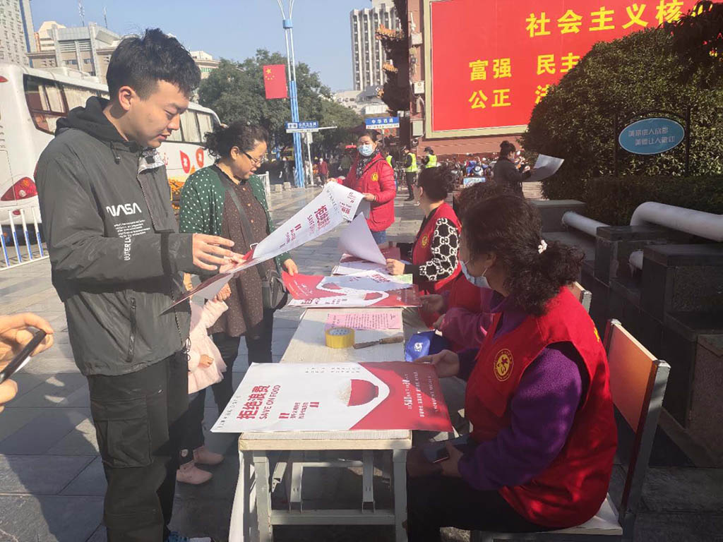 活动现场,志愿者们拿着“节俭养德从你我做起”的宣传单在人口密集的光明巷、步行街、兰天城市广场、文庙等人流量密集路段和沿街门店发放宣传单1000余份,倡议大家节约身边的每一滴水,每一粒粮食,每一分钱,每一度电,每一张纸。