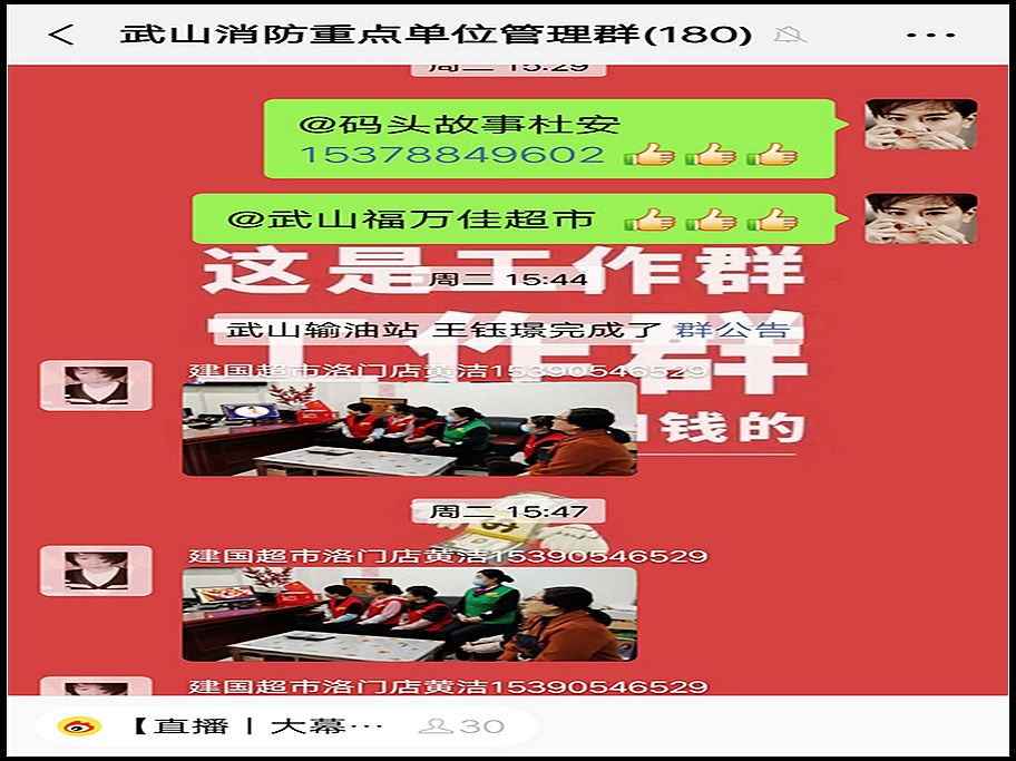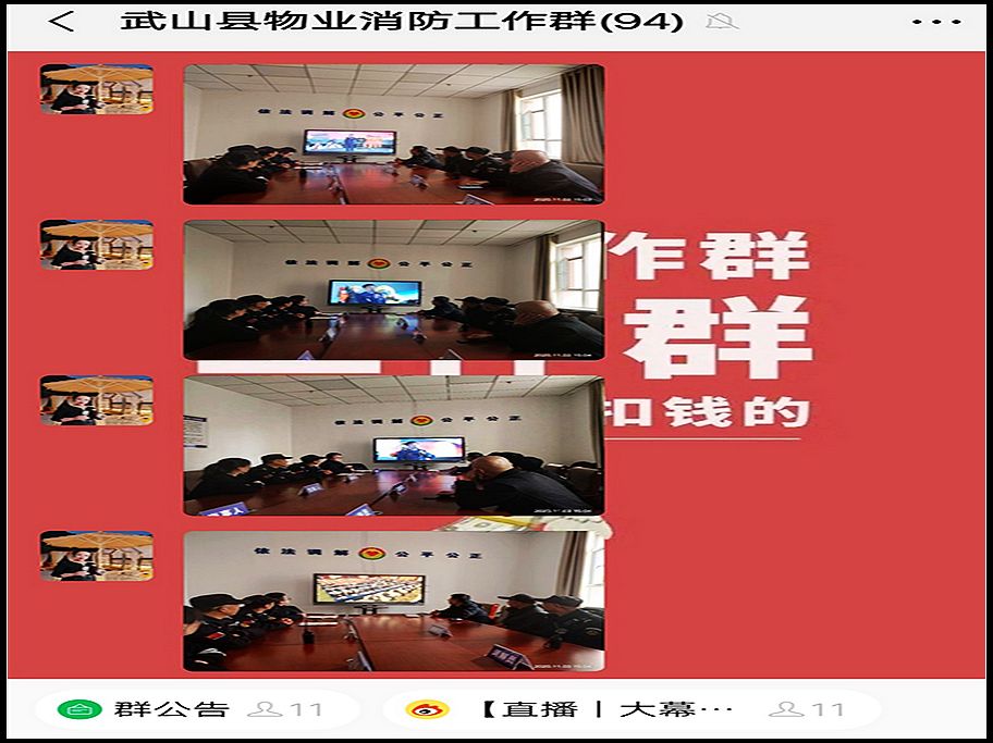 大队宣传人员利用微信工作群向消防重点单位、辖区物业管理群发送火灾警示片,呼吁大家共同学习传播消防安全知识,加强消防安全管理,为生活提供一份安全保障,各单位积极组织单位员工收看,及时反馈收看情况,全面提高了消防工作社会化功能,成为全民参与消防的助力剂。