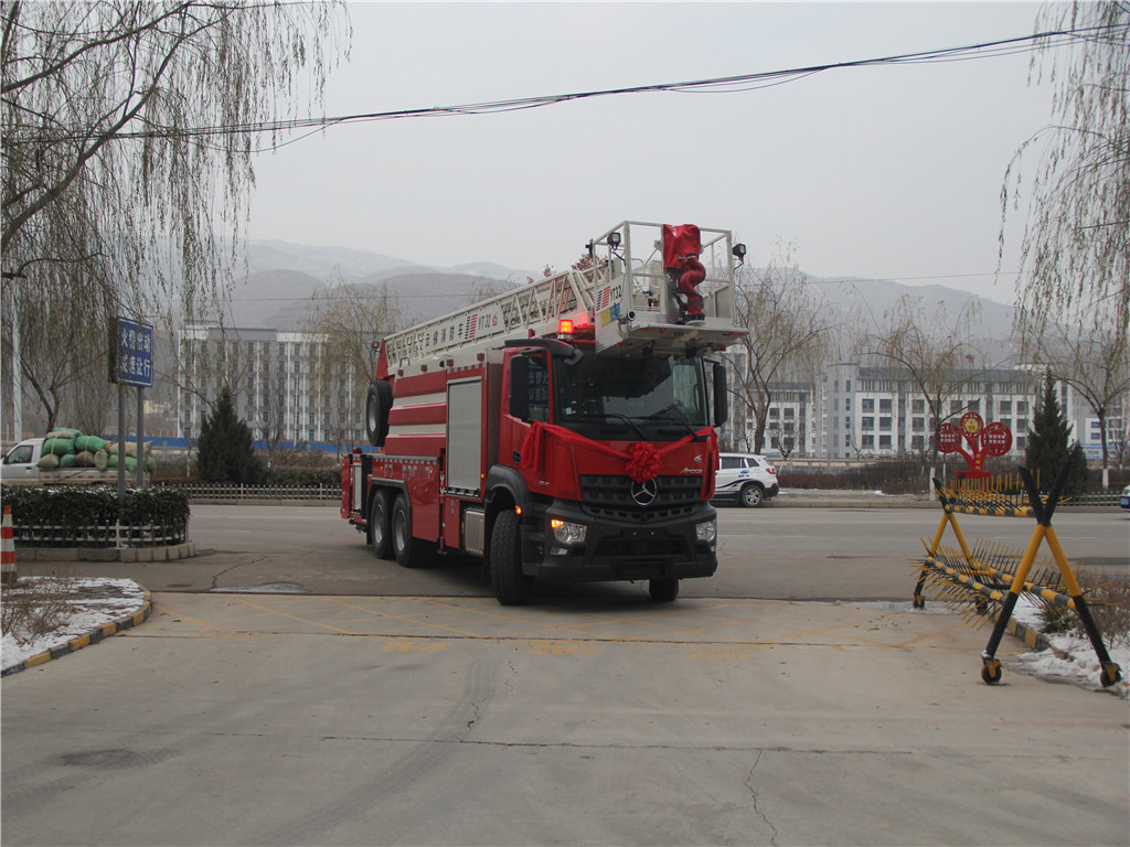 新购置的云梯消防车采用德国云梯车电器、液压系统及元件研制成功的世界上先进的消防登高设备,各性能机构均采用电器控制液压驱动,操作简便、动作灵活、安全可靠、实用性强,最大救援高度32米,最大俯仰角度为-45°至+90°,具备功能强大、性能优越、持续作战能力强、云梯救援速度快等优势。此外,该云梯消防车可利用工作斗、升降机或搭载梯桥同时对多人实施高空救援,兼具高空灭火等多种功能,更适合人口密集、道路狭小,建筑物数量众多的区域火灾扑救及救援。