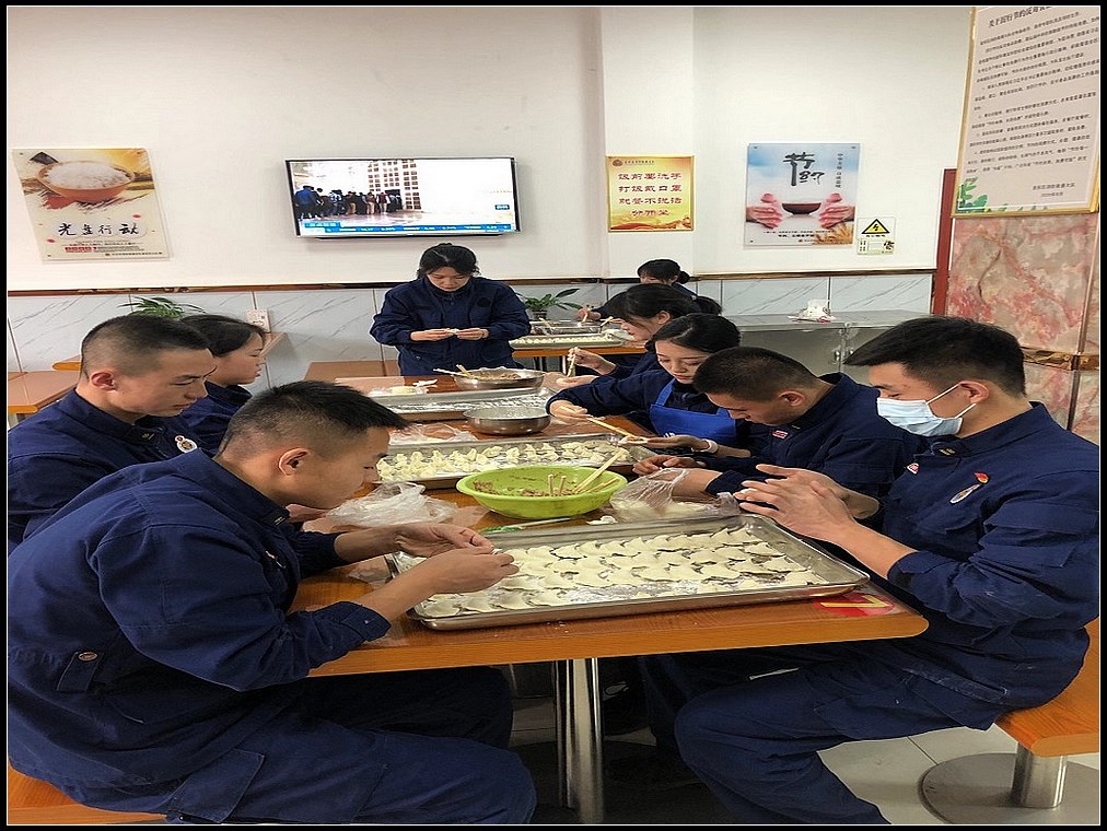 “冬至不端饺子碗,冻掉耳朵没人管”,冬至时节,“吃饺子”是中国很多地方的传统习俗,为了让全体指战员,专职消防队员,消防文员过一个愉快和谐的冬至,麦积区消防救援大队的蓝朋友们汇聚一堂,开展集体包饺子活动,让远离亲人的消防员倍感温馨,活动现场欢声笑语、热闹无比。大家一边包饺子一边聊着家里的冬至习俗,揉、搓、捏、包间,把浓浓的队友情谊和满满的对节日的祝福融在一个个饺子中,大家的脸上洋溢着幸福笑容。尽管大家包的饺子五花八门、千奇百怪,可吃在嘴里是香的,想在心理是甜的。
