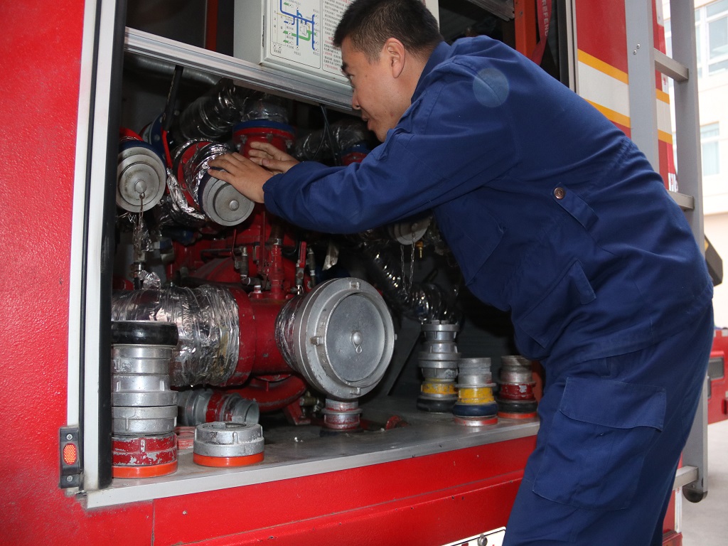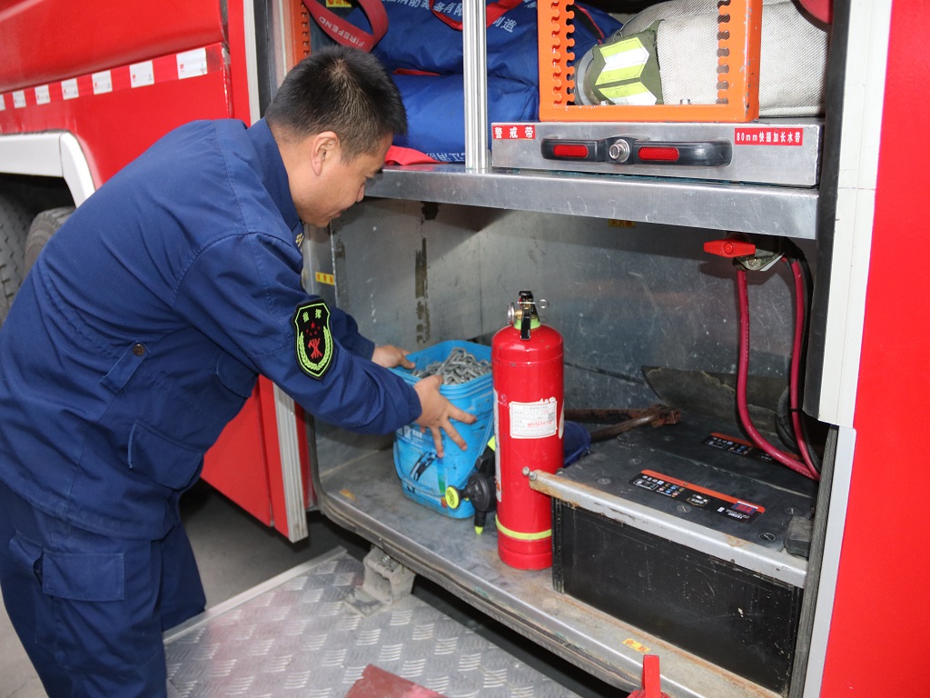 在检查中,消防站干部严格按照车辆器材保养维护的要求认真对车辆、器材进行了全面彻底的清查。驾驶员对执勤车辆的发动机、制动系统、灯光线路、燃油、供电、供水系统等逐一进行检查,发现问题、立即排除各种故障和不安全因素,保证车辆性能和器材完好。同时对车辆的消防泵及其管路、出水口、水炮上的保暖套管等进行主要管路进行包裹,并且检查了喷灯和车辆防滑链,确保出车安全。最后组织人员对车辆装备器材再熟悉,切实让指战员对自己分管的器材知根知底,对驾驶员再进行管理教育,全面提高驾驶员的安全意识,增强驾驶员安全行车的自我约束能力。