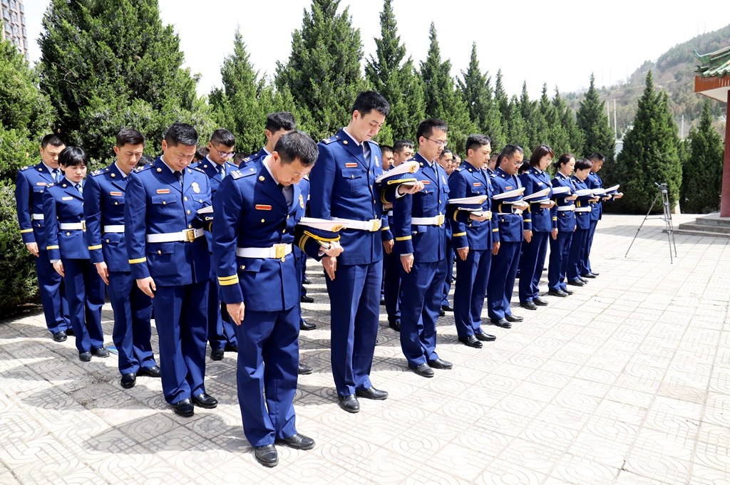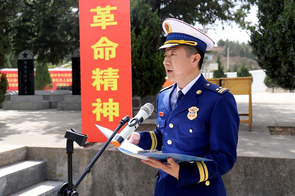 下午14时,在庄严肃穆的革命烈士陵园中,指战员代表向革命烈士敬献了花篮,支队政委张磊为花篮整理缎带,全体指战员怀着崇敬的心情为烈士们的英勇牺牲默哀。张磊在讲话中指出:100年党史,是无数革命先烈舍生忘死、前赴后继、为后人谋幸福的历史,组织祭扫烈士墓,既是为了珍视历史,慰祭先烈,更是为了继承先烈的遗志,沿着前人的足迹,团结一心,与时俱进,以饱满的精神、出色的工作和优异的成绩,来告慰革命先烈在天之灵。饮水思源、不忘来路。纪念是为了不忘却,不管时光如何变迁,英烈们对党和人民的无限忠诚和崇高品德不会被遗忘,他们爱岗敬业、恪尽职守、无私奉献、不怕牺牲的忠诚本色不会被遗忘,他们顽强拼搏、迎难而上、临危不惧的大无畏精神不会被遗忘。他们永垂不朽,万古长青。一腔热血铸忠魂,勇士辉煌化金星。党的事业薪火相传,我们将牢记先烈们光荣的革命事迹和优良的革命传统,在党史学习教育的不断深入开展中,做到学史明理、学史增信、学史崇德、学史力行;在对先烈的深切缅怀中,主动作为,勇敢地肩负起英烈们未酬的壮志,肩负起英烈们未竟的事业,不惧艰难、勇往直前;在开拓创新的时代潮流中,团结一致、自强不息、沿着英烈们的光辉足迹奋勇前进,为谱写天水消防发展新篇章做出新的更大的贡献!